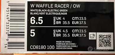 Nike in collaborazione con Off-White. Modello Waffle Racer Off-White, colore White (Women's). Lacci verdi mai usati.