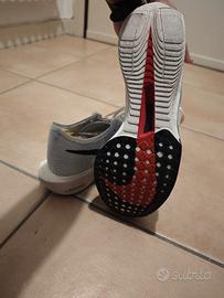 Scarpe da gara corsa/running Nike ZoomX Vaporfly Next%3 in fibra di carbonio, colore bianco/argento, le vendo per cambio taglia, indossate una volta. Solo per polpacci forti. Fornisco anche ricevuta d'acquisto (230€).