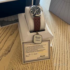 Nivada 35 mm serie numerata pari al nuovo aquistato e tenuto in collezione corredo completo e garanzia nota orologeria italiana. Vendo x cambio progetto orologio difficilissimo da rrperire specia con questo prezzo . No scambio no perditempo preferibile consegna a mano in alternativa spedizione dhl