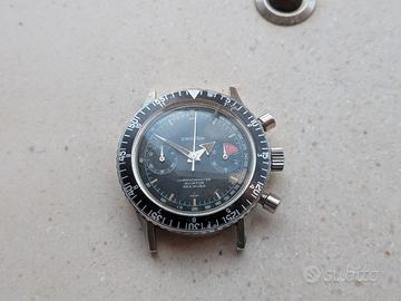 Dalla mia collezione privata cedo questo Croton Chronomaster Aviator Sea Diver, brand della Nivada Grenchen per il mercato USA. Orologio vintage della metà degli anni 60. Indici al trizio, ghiera bidirezionale, movimento valjoux 23. L'orologio è da revisionare, è venduto come non funzionante. Pagamento a mezzo bonifico/contanti/PayPal amici. Spedizione espressa assicurata oppure consegna a mano. Chiedo cortesemente serietà.