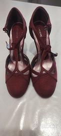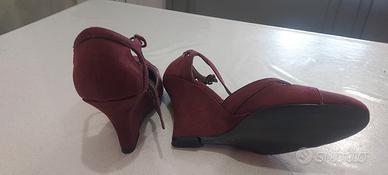 Scarpe marca chedive (lavorazioni artigianali) con zeppa 10cm in simil camoscio vinaccia bordeaux 39.