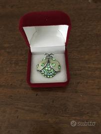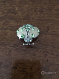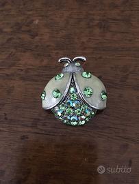 Spilla originale Noblesse . Pregiata bigiotteria con l’iconica coccinella portafortuna. In metallo color argento e gli zirconi luminosissimi con riflessi verde acqua. Misura cm 3 . Logo inciso internamente. Inclusa la scatola antipolvere. Ottimo stato