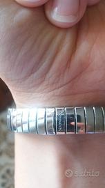 Vendo bracciale in acciaio anallergico in maglia elastica con farfalle impreziosite da 9 Zirconia Cubica di colore bianco.