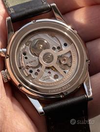 Se cerchi qualcosa di diverso dai soliti Rolex/Omega, questo è il pezzo giusto. Vendo Nomos Zürich Worldtimer, uno dei modelli più riusciti della manifattura tedesca: design pulito Bauhaus + vera complicazione World Time. Un orologio che dal vivo colpisce molto più che in foto. ⸻ 🔹 Caratteristiche principali •Movimento manifattura Nomos DUW 5201 •Funzione World Time con selezione città tramite pulsante •Indicazione giorno/notte •Quadrante blu profondo, molto dinamico alla luce •Fondello a vista con movimento rifinito •Cassa elegante e sottile (portabilità top) ⸻ 🔹 Condizioni Ottime condizioni generali, usato con cura ma pari al nuovo. Funzionamento perfetto. ⸻ 💰 Prezzo 2.990€ leggermente trattabili 👉 Valuto offerte sensate, no perditempo. ⸻ 📍 Consegna •Scambio a mano zona Milano ⸻ ⭐ Perché prenderlo •Manifattura vera (non un semplice ETA rimarchiato) •Complicazione utile e rara in questa fascia •Esteticamente elegante ma non banale •Poco diffuso → non lo hanno tutti ⸻ Scrivimi per info o foto/video aggiuntivi 👍