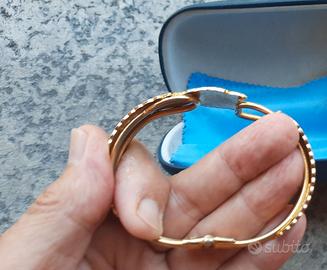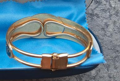 Vendo per inutilizzo (il bracciale è diventato piccolo), un bracciale cloisonné originale (non cineseria), acquistato in Scozia. I morsetti a molla sottostanti consentono l’apertura da sopra, le raffigurazioni sono realizzate in smalto e lo stato di conservazione dei bracciali è ottimo (sembrano nuovi). Il bracciale ha forma ellittica e le dimensioni dei due assi (così da valutare la posizione nel braccio), sono le seguenti: 4,5 x 6,0 cm. Il prezzo di vendita è di 20€, franco venditore. Astenersi perditempo.