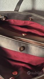 borsa grande a tre scomparti interni, con chiusure lampo e bottoni a magnete . ecooelle martellata. interno dal cotone mattone. capiente in ottime condizioni. usata una sola volta. gancio per aggiungere catena lunga per tracolla .