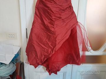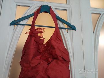 Nr. 1 abito per cerimonia o eventi con scollatura all'americana decorata davanti da 1 fascia a punte al lati, spalle scoperte dietro e inserto di voile sul davanti/sinistra. Molto elegante, il colore non lascia passare inosservate. Prezzo non trattabile. Disponibili, per cambio guardaroba, altri abiti per cerimonia/eventi per donna, anche capi da sposa (1 abito da sposa, coprispalle, gonne, veli, corsetti, 1 stola in ecopelliccia color ghiaccio per spose d'inverno, 1 paio di sandali color avorio a punta con cristalli mis 39), costumi, copricostume, caftani anche egiziani originali nuovi con cartellino, abiti interi e da abbinare, tailleur, gonne e pantaloni per donna, uomo, bambino per 4 stagioni, anche taglie calibrate + accessori tra cui borsette portatrucco e bijoux.