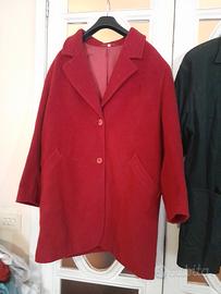 Nr. 2 cappotti taglie comode, foderati: il 1° è color verde bottiglia, taglia 55, si chiude con 3 bottoni in tinta, accollato con il collo a camicia, maniche a 3/4, fondo dritto, 2 tasche sul davanti; il 2° color rosso, taglia 53, collo a revers, si chiude con 2 bottoni in tinta, maniche lunghe, fondo arrotondato, 2 tasche inserite davanti. In perfette condizioni. Disponibili, per cambio guardaroba, altri giacconi e cappotti anche imbottiti, impermeabili, giacche, giubbini, smanicati, 3 giacconi: 2 di vero montone, 1 di vera pelliccia, 1 cappotto di vero camoscio anni 60, 1 collo di vera pelliccia di volpe, 2 colli di ecopelliccia colorati, alcuni capi per cerimonia per donna (1 abito da sera, 1 tuta con le spalle scoperte, 1 insieme nero: 1 pulloverino ricamato ed 1 gonna di velluto, 1 abito da sposa, coprispalle, gonne, veli, corsetti, 1 stola in ecopelliccia color avorio per spose d'inverno, 1 paio di scarpe da sposa color avorio a punta con cristalli mis. 39), pigiami, camicie da notte, vestaglie, abiti interi e da abbinare, tailleur, alcuni abiti da lavoro, capi di jeans (pantaloni, salopette premaman, gonne, camicie), gonne, shorts, bermuda, leggings, pantaloni, pullover a collo alto, scollo tondo e a V, cardigan, polo, gilet, sottogiacca, camicie per donna,uomo, bambino per 4 stagioni, anche taglie calibrate + borse per la città e per le escursioni, zaini, beauty-case, pochette per il trucco e portatutto, portafogli, scarpe, stivali, sandali, cinture,foulard e sciarpe grandi e piccole, cravatte anni 70-80-90, cappelli, guanti, bijoux, portagioie