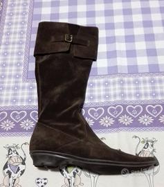 Nuovi Stivali da donna, numero 39, colore marrone, scamosciate e con cerniera per la chiusura. Marca Vitulli.