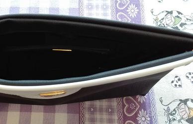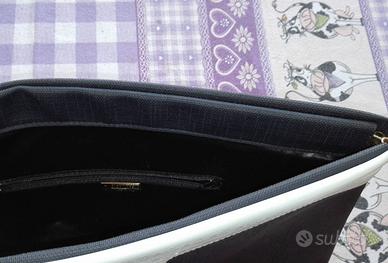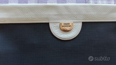 Nuova Borsetta a busta, Enzo Moreno, colore blu e bordo bianco.
