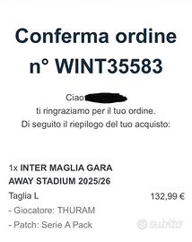 Vendo causa errore taglia MAGLIA INTER AWAY 26/26 MAI INDOSSATA! Taglia L - personalizzata THURAM, 9 - maglia NUOVA CON ETICHETTA ORIGINALE, Pagata 132 euro come da foto.