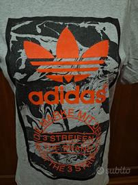 Nuova tshirt Adidas tg. M. grigia con scritte arancioni fluo.