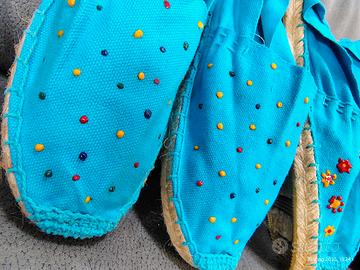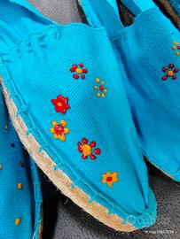 Espadrillas nuove cucite a mano, made in Spagna 🇪🇸 colore azzurro acceso con disegni realizzati a mano. Un paio €15 Unisex taglia 38