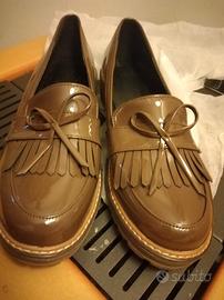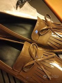 scarpe nuove mai indossate nocciola di vernice tg41 belle robuste di vernice lucide con cuffiette copri scarpa (zenza scatola non spedico