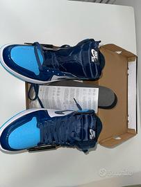 NUOVE CON SCATOLA Scarpe N. 44 - JORDAN Sneakers Air Jordan 1 UNC High Lucide, Pelle verniciata Bianco Blue Chill Blu navy Ritiro su Milano o Provincia in caso di spedizione ci si accorda. ( TAG - basket Sportswear DUNK Unisex Sneakers nike adidas puma Wmns Air Force Air Max Dn Es aw lab LOW Shox TL HUARACHE MEN SHOES Dn8 Gym Dia Lune panda Cortez Midnight university 270 Court Vision Waffle force Stylight more Motiva Versair Field next twister)