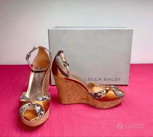 Vendo sandali firmati Lella Baldi con zeppa alta 10 cm. L'articolo è stato indossato 1 volta, le suole infatti sono pulitissime. Condizioni generali ottime. Saranno vendute nella loro scatola originale. Made in Italy. Materiale: Raso Tipo di Tacco: Zeppe Chiusura: Laterale Altezza Tacco: 10 Colore: Roccia e Rame Numero: 37 Per ulteriori informazioni non esitate a contattarmi. #lellabaldi #sandalilellabaldi #scarpelellabaldi #sandalidonna #scarpedonna #estate #primavera