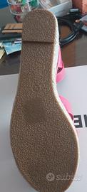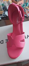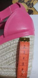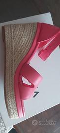 Splendidi sandali con zeppa firmati Vivienne D, in una vibrante tonalità fucsia acceso, perfetti per dare un tocco di colore ai tuoi outfit estivi! Assolutamente NUOVI, mai indossati. Inclusa la loro scatola originale. Design: Tomaia in ecopelle con raffinato motivo a intaglio sulla parte anteriore e cinturino regolabile alla caviglia per il massimo comfort. Stile Espadrillas: Zeppa e plateau rivestiti in yuta intrecciata. Taglia 36 (calzata regolare). Altezza zeppa circa 10 cm con plateau di 4 cm.Prezzo 25,00€.