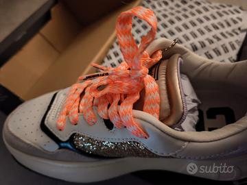 Vendo bellissime sneakers D.Franklin originali, modello urban-chic con dettagli glitterati e lacci tecnici arancio fluo. Un modello perfetto per dare un tocco di luce e colore anche all'outfit più semplice!