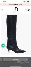 Stivali al ginocchio Vera Pelle Nera Brand Lia Diva. Tacco altezza 6, senza cerniera. Calzano regolari, punta leggermente stretta in avanti. Realizzati in modo artigianale Made in Italy. Vendo perchè purtroppo mi sono infortunata al piede, e non posso utilizzarli. Mai indossati, solo provati in casa ( guardare la suola). Per info 3487493820