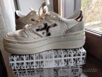 Snikers bianche n 38 super nuove, purtroppo mai usate perché da ora devo usare solette ortopediche e mi occorre un numero in più. quindi scarpe non viziate o deformate. Con sua scatola originale e foglietto manutenzione. perfette nuove