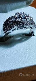 Trattasi di un anello nuovo mai usato né indossato per donna in argento, punzonato con brillanti al centro e laterali per un totale di 1,2 kt. di stile vintage pezzo unico.