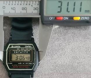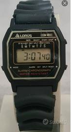 Rarissimo orologio cronografo al quarzo LCD digitale da Uomo o Unisex vintage fine anni '80 nuovo NOS marca Lorus by Seiko, modello RRQ029-9, con movimento Giapponese al quarzo Seiko calibro Y799-4788, cassa in resina, fondello acciaio e cinturino in gomma originale Seiko.