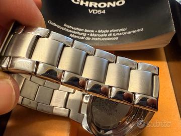🕒 In vendita: Orologio Tribe by Breil Chrono VD54 – NUOVO, VINTAGE MAI INDOSSATO ANNO 2003 mai indossato Prezzo: 299 € Condizione: Nuovo, mai indossato Completo di: ✅ Scatola originale ✅ Manuale di istruzioni multilingua ✅ 2 maglie extra per estensione bracciale ✅ presenta pellicola di protezione BATTERIA DA SOSTITUIRE ✨ Caratteristiche principali: •Modello: Tribe by Breil VD54 Chrono •Movimento: Quartz giapponese Seiko VD54 ad alta precisione •Funzioni: •Cronografo a 3 contatori (secondi, minuti, 24h) •Indicazione dell’ora su 12/24h •Quadrante: Blu intenso con indici e numeri arabi ben leggibili •Vetro: Minerale resistente ai graffi •Cassa e bracciale: Acciaio inox satinato e lucido •Chiusura: Deployante con logo inciso •Impermeabilità: Water Resistant (verificare specifiche nel manuale) 🧰 Altri vantaggi: •Stile sportivo ed elegante, adatto a ogni occasione •Costruzione solida, perfetta per chi cerca un orologio resistente e affidabile •Comodità regolabile grazie alle maglie aggiuntive incluse 📦 Spedizione disponibile o consegna a mano in zona. Per qualsiasi informazione o foto aggiuntiva, non esitare a contattarmi. NO COSTA D’AVORIO NON SCAMBIO