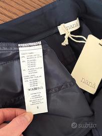 Pantalone Nanà Made in Italy, blu scuro, taglio a sigaretta con piega, vita bassa, tasche laterali davanti e taschini dietro.