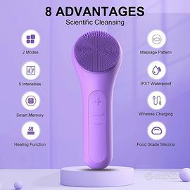 NUOVO Spazzola Pulizia Viso con IPX7 Impermeabile&Caricatore Magnetico-Cinque Mode Massaggio Riscaldamento:Pulizia Profonda Exfoliante Gentle per Women Men Gift (Viola)