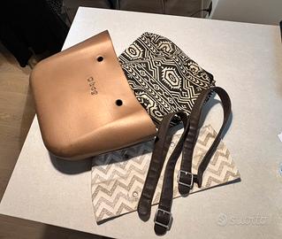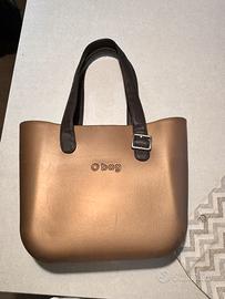 Bellissima borsa O Bag grande color bronzo, con manici in ecopelle, con bordo unico fatto a mano, con sacca interna. Si può usare anche senza sacca interna per mare o piscina