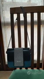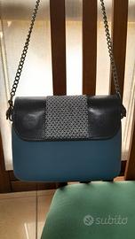 Mini O bag con tracolla a catenella. Colore blu con pattina fantasia blu