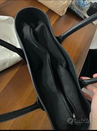 O bag nera Con due maniglie (corda e pelle lunghe) Sacca in tela nera e bianca.
