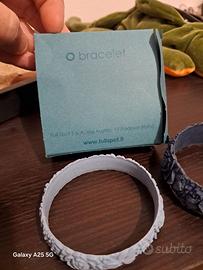 - Un bracciale azzurro con motivo floreale.