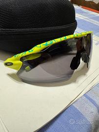 Questo è un paio di occhiali da sole Oakley Radar EV Path con montatura gialla e lenti Prizm.