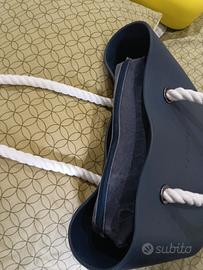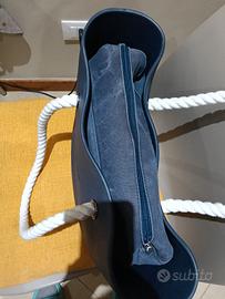 vendo borsa obag blu scuro con manici lunghi in corda bianca,interno blu effetto jeans, tutto originale obag. la borsa è stata usata ma è ancora in buone condizioni. posso spedire o eventualmente consegna a mano a Mestre zona Carpenedo.