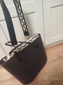 Borsa nera, con interno a fantasia. Due opzioni di manico: