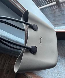 Vendo borsa O bag originale, modello shopper, colore tortora chiaro con manici marrone scuro effetto pelle.