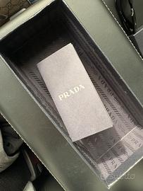 Colore nero lucido con logo triangolare PRADA Milano sulle aste.