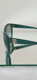 Occhiale Chanel. Occhiale nuovo mai indossato. Perfetto, senza graffi. Colore verde . Lente con logo Chanel glitter e numero di serie. Venduto con custodia e pezzuola Chanel.