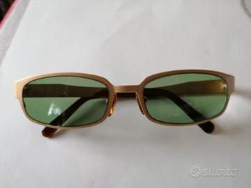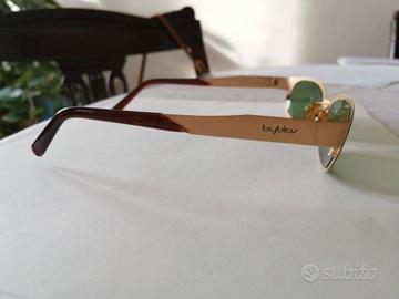 Occhiale da sole Byblos con doppia lente verde o marrone. Montatura color oro satinato. Modello 696S