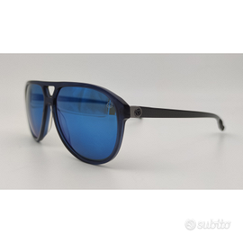 Lenti specchio blu ad elevata protezione dai raggi UV, con logo inciso a laser su quella sinistra.