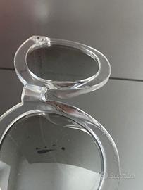 Occhiale da sole con montatura trasparente e lenti a specchio. Nell'ultima foto vede che in una lente c'è un difetto. Prototipo senza firma.