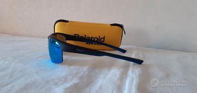 Occhiale da sole " POLAROID " mod. 7018 blu-nero opaco con lente a specchio blu polarizzato, completo di astuccio, sacchetto morbido, microfibra per pulizia lenti