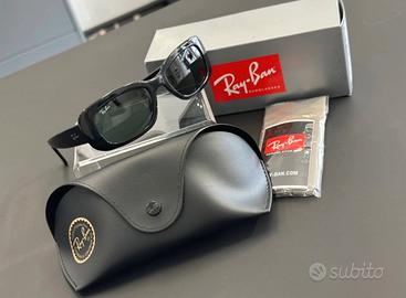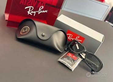 L'occhiale è nuovo, mai utilizzato, completo di custodia originale Ray-Ban in pelle satinata nera, certificato di autenticità Luxottica/Ray-Ban e panno