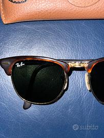 Gli occhiali da sole Clubmaster Classic di Ray-Ban sono un classico intramontabile che reinterpreta in chiave moderna il modello originale degli anni '50. Questa versione tartarugato su oro sfoggia cerchi oversize full-metal con lenti quadrate G-15 verdi e un ponte nasale stretto.