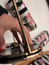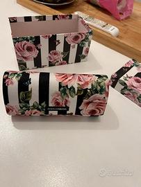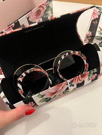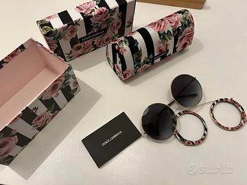 Dolce & Gabbana - Occhiale da sole rotondo in metallo dorato con Clip On - Stampa righe e rose. Nuovo.