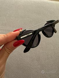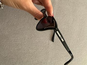 Occhiale a forma cat-eye nero con borchiette applicate e ponte in metallo. Come nuovo, indossato una sola volta.