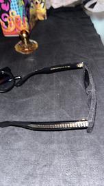 Perfette condizoni occhiale con montatura scamosciata e inserti in oro