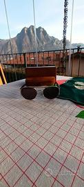 web occhiale storico della luxottica. lenti grigie in vetro, stanghette in tartaruga. modello large. la stanghette sx presenta una piccola crepa ma l'occhiale non ne risente.