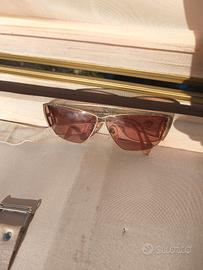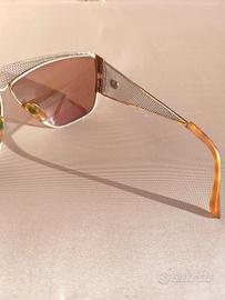 Si tratta di un paio diocchiali da sole vintage Valentino Mod. 605. Questi occhiali sono caratterizzati da una distintiva griglia metallica che copre la parte superiore del frontale e si estende sulle aste.